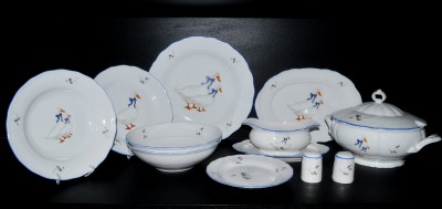 Porcelánová jídelní souprava Husa, tvar Verona. Tato jídelní souprava je vhodná do myčky i mikrovlné trouby.