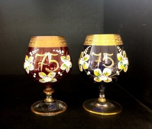 Výroční sklenice 75 400 ml. 1ks červená nebo modrá